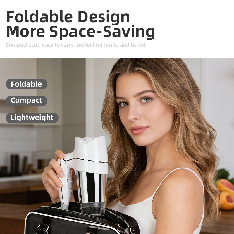 A portable travel hair dryer is a compact hair dryer that is easy to carry and store. It is usually lightweight and foldable, making it suitable for travel, hotels, dormitories, and small bathrooms.