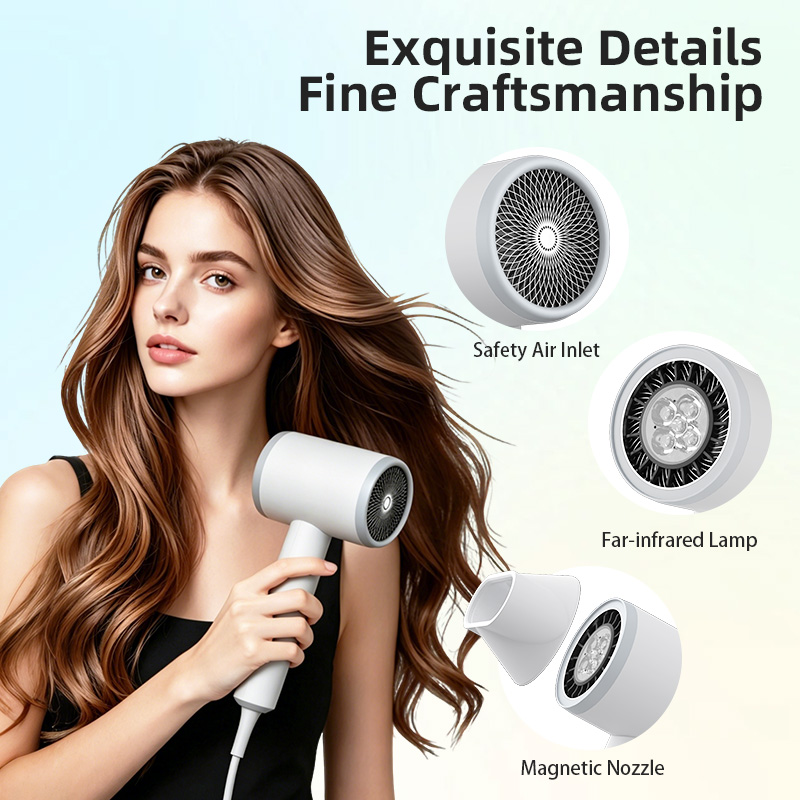 Our ion portable hair dryer releases 10 million negative ions to neutralize static, seal hair cuticles, and reduce frizz by 50%. Enjoy 35% smoother, 40% shinier hair with every use—perfect for all hair types, from curly to straight.