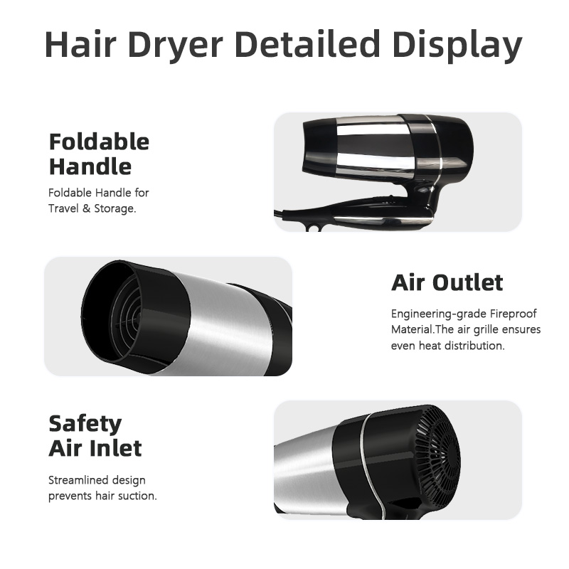 A portable electric hair dryer is a compact hair-drying device that is easy to carry and store. C205 has a foldable handle, making it suitable for home, travel, hotel, and personal care use.