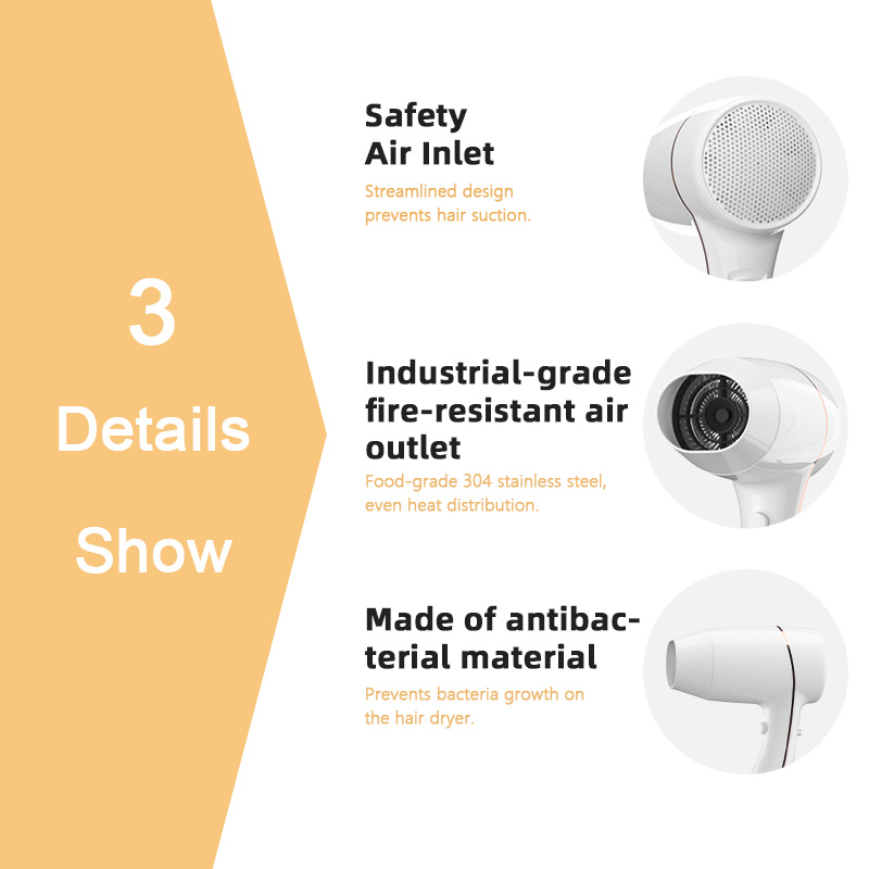 Unlike traditional hair dryers, our SG-02 runs at just 59dB — quiet enough to use around sleeping babies or in shared spaces. The special-purpose DC motor delivers faster speed with less noise, making it perfect for hotels and family homes.